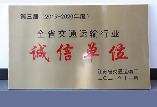 2021年獲第三屆(2019-2020年度)江蘇省交通運輸行業(yè)“誠信單位”稱號