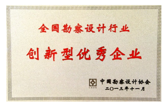 2013年被中國勘察設計協(xié)會評為 “中國勘察設計行業(yè)創(chuàng)新型優(yōu)秀企業(yè)”