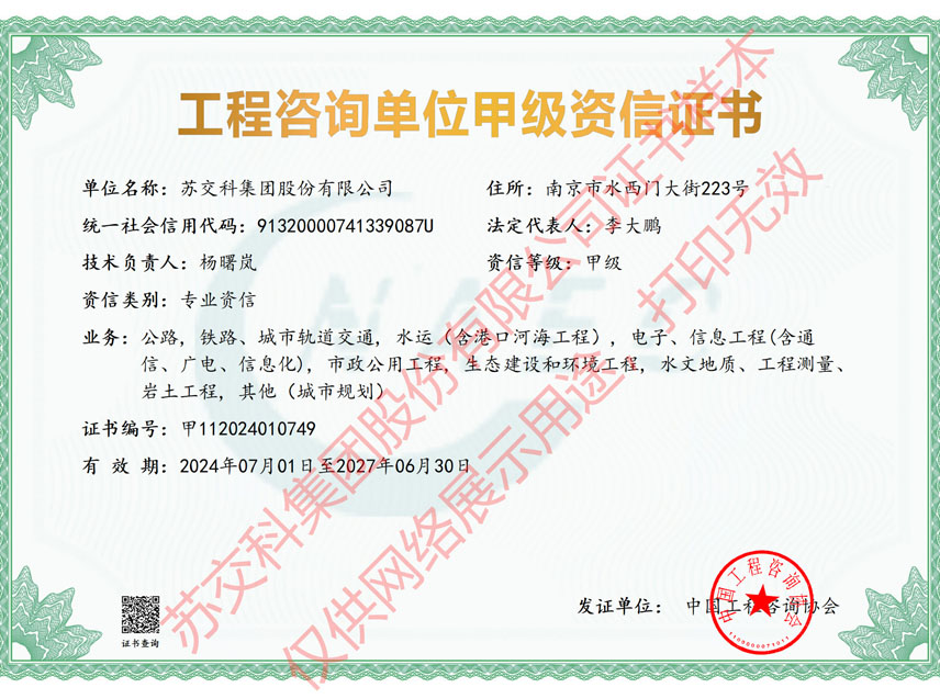 蘇科建設(shè)公路工程監(jiān)理甲級(jí)