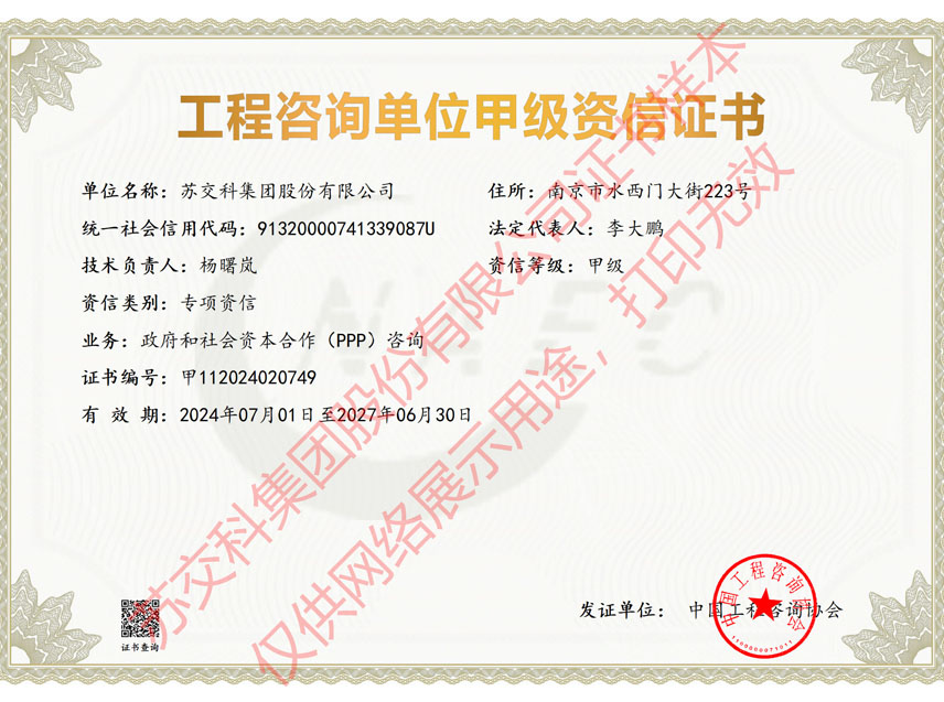 蘇科建設(shè)市政公用工程監(jiān)理甲級(jí)