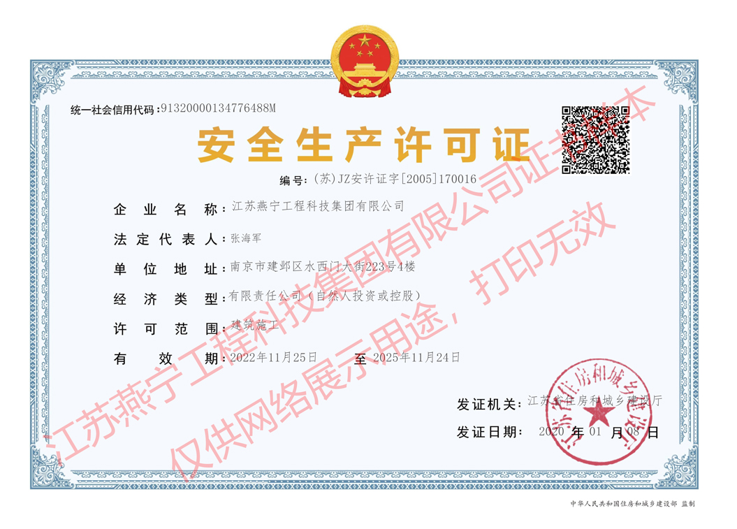 燕寧工科施工總承包壹級(jí)資質(zhì)