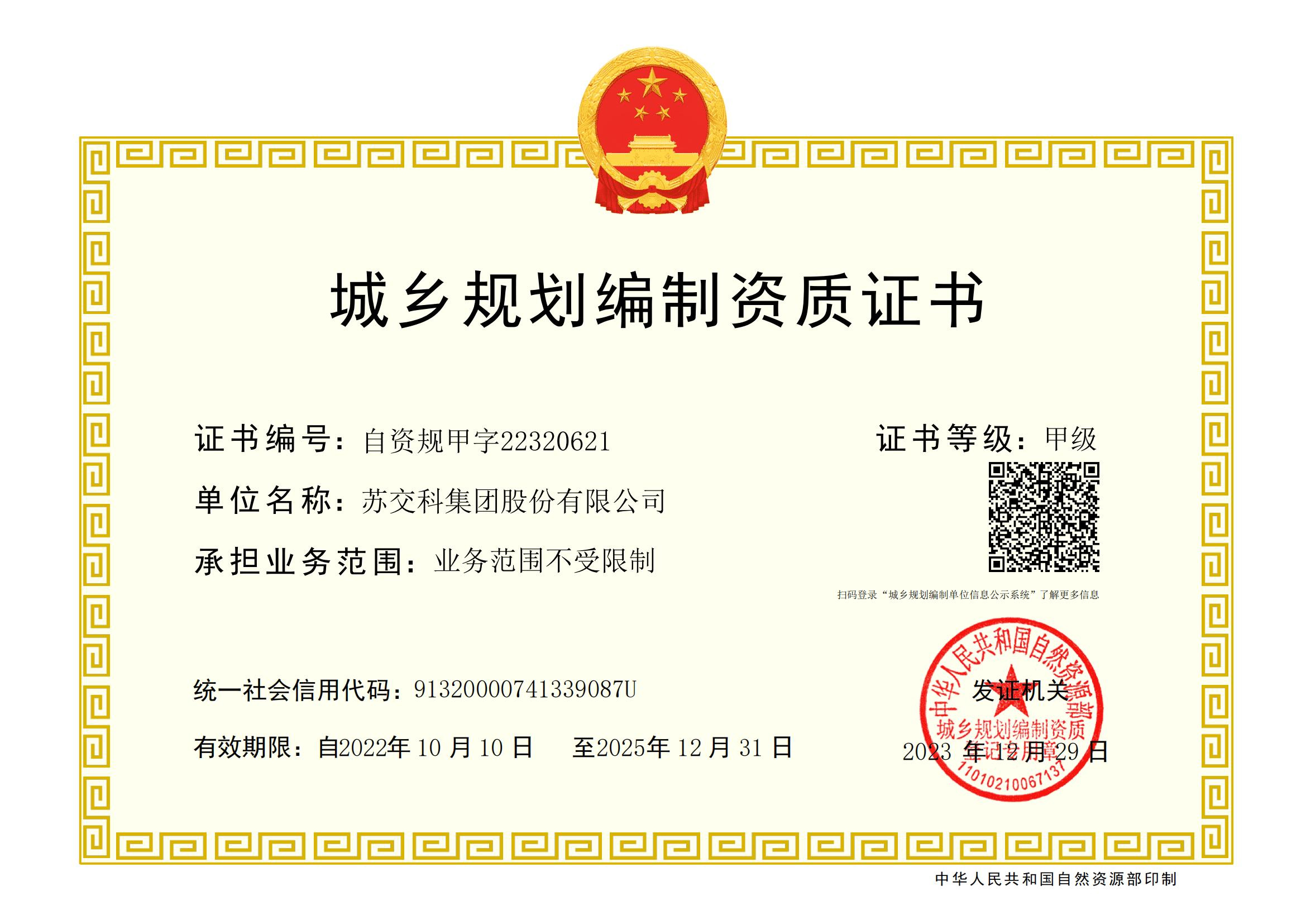 城鄉(xiāng)規(guī)劃編制資質(zhì)證書甲級(jí)
